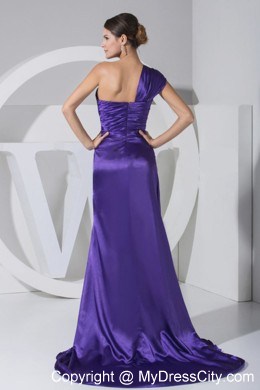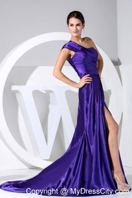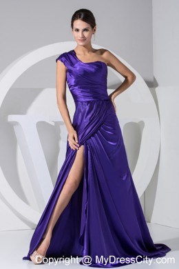 Simply gorgeous of this purple prom dress. It features a gorgeous one shoulder bodice with the ruches wraping your bodice. The waist is characterized by the dainty pleats that makes the design so elegant. A high slit in the front adds to its sexy charm. The floor-length skirt definitly reveal your slim figure. The zipper up closure shows your beautiful back and finishes this elegant dress.