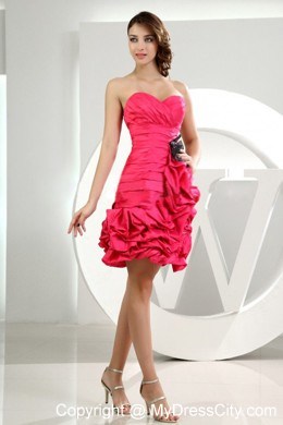 Gorgeous is the word written all over this dress. Featured with short styles and ruffled skirt, this dress is the right choice for one who wants to be the party queen. Sweetheart neckline and ruching details all-over is the charisma of this piece. Black ornaments highlights the waist and ruffles on the skirt accented the whole sexy look. Easy fitting from the zipper up back.