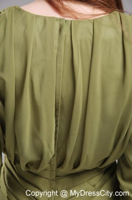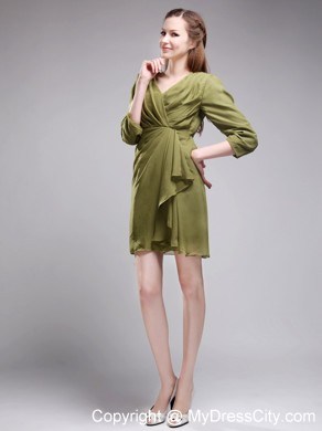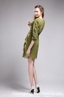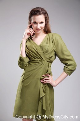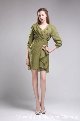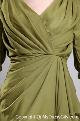 What an elegant prom dress!The dress features an V-neck neckline which is sexy,while the three-quarter sleeves add a touch of modesity to the dress.Adorned by the ruched yet soft fabric on the whole dress,this gown will be sure to help you turn heads.