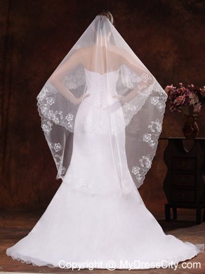 Product Name: Lace Appliques And Two-tier Organza Veil For Wedding