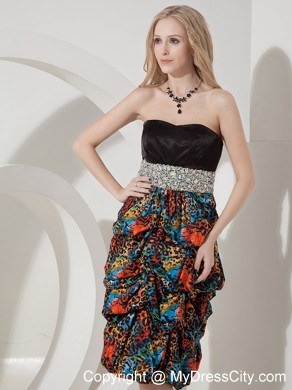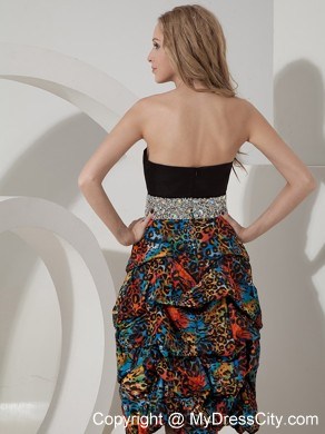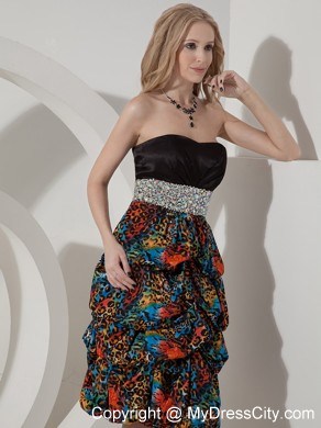 The party starts the moment you put on this sensational short party dress. A colorful short prom dress for any occasion you want to make special. The bodice features a sweet heart neckline while the waist band covers in multi-colored embellishments.The super skirt is made of modern leopard prints in bold beautiful colors and covered with layers of ruchings that give it a full sassy style that will look great on the dance floor.