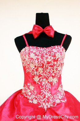 The bodice is encrusted by exquisite appliques and beading, together with a beautiful bow below the neck. layers of orangza on the skirt makes the dress gorgeous. A lace up back completes the look.