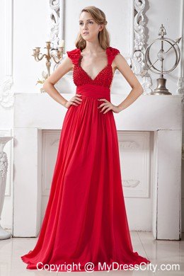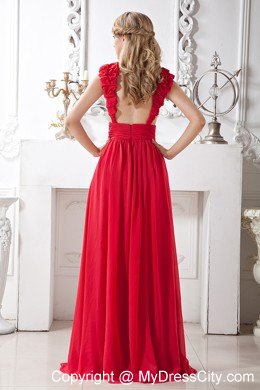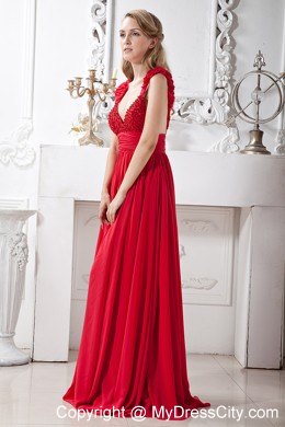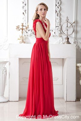 If you're looking for a chic and elegant design for your next event, look no further. This one will definitely suffice. It features a gorgeous backless bodice with a V neck, exaggerated straps are totally covered by wonderful flowers. The skirt is fitted and it falls in soft lines to the floor, creating a lovely silhouette. Just a very flattering design for any body shape or style.