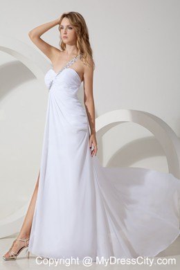 You will fall in love with this dress when you look at it at the first time. This one shoulder floor length prom dress features a sweetheart neckline with a fitted bodice. The flattering ruches accentuate your curve. The exquisite beadwork hights this graceful dress! You will be the most sexy girl in this dress not only for the sexy split but also for the sexy open back.