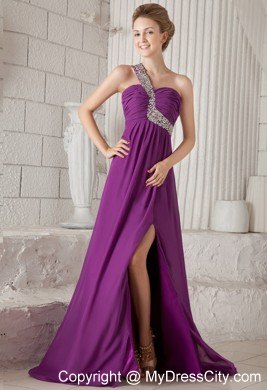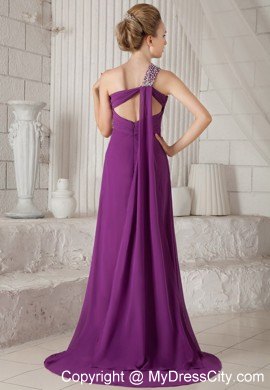 Fabulous is the word created for this dress. A special designed one shoulder strap with glimmering beading adorned on the ruched bodice to create a sense of romance. Soft chiffon flows naturally, unique designed back make the dress flirty and not too exposed. A gorgeous sweep train finishes the look.