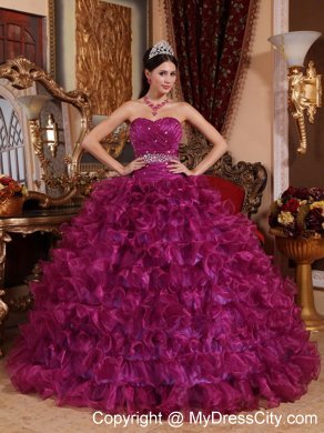 Luxurious and magnificent! This ball gown sweetheart red quinceanera dress is sure to catch eyes with the intricate ruffles appearing layer by layer at the bottom of the dress, which perfectly puffs the ball gown.The bodice is accented with tiny shimmering beads.You can not find a prettier quinceanera dress if you miss this one!