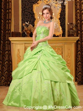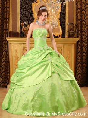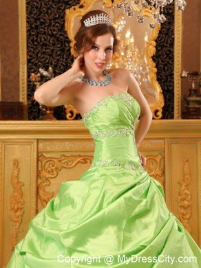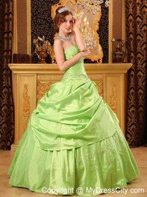 Dare to dazzle at your 2012quinceanera or holiday party in this quinceanera ball gown dress! Exquisite beaded embroidery appliques on the top upgrades your taste and beautifies the dress. the puffy skirt accented with flora embroidery features a peek-a-boo layer overlay which addes a fuller effect. A lace up corset style closure in the back secures the dress in place. Heads will turn as you arrive at your quinceanera or formal in this amazing ball gown!