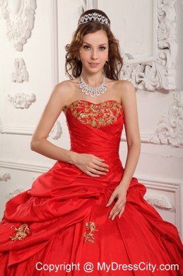 Gorgeous and dazzling ! This luminous beaded taffeta quinceanera ball gown features the body -hugging bodice with beaded embroidery applique on the bust, which enhance your feminine quality. The full skirt scattered embroidery applique is accented with peek-a-boo layer asymmetrically fabric overlay , which creats a fabulous effect.This is a beautiful gown and would make a lovely addition to anyone's formal wardrobe!
