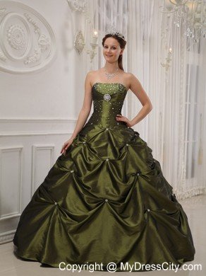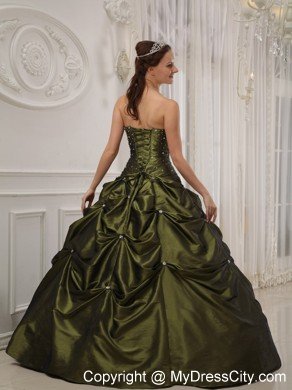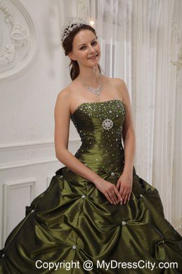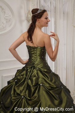 An elegant quinceanera gown features with a strapless bodice and A-line skirt. The beads scattered asymmetrically over the dress add a shinning looking. The tufted train gives the lower skirt a spectacular rippling wave appearance. The lace up back is the finishment of the dress.Dressing the ball gown, you will light up the night.