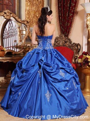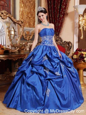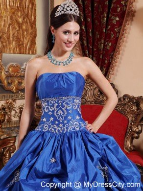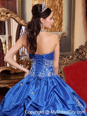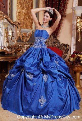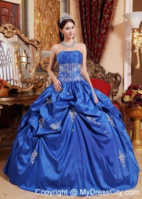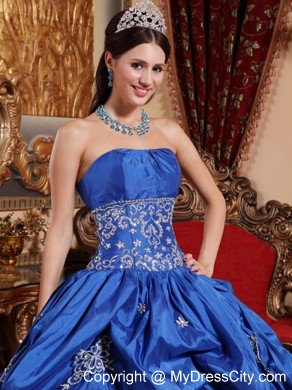 All eyes on you in this beautiful applique quinceanera dress that will make your day extra special. Strapless bodice with shirring at the bust line, midriff embroidered and beaded. Full skirt with multi-tiered ruffles and exquisite appliques softly touching the fabric. The dress sways beautifully across the floor when you move, as if you're floating on air. The back is fitted with lace up ties. If you're looking for a high-end dress without the high-end price tag, this is definitely one you should consider.