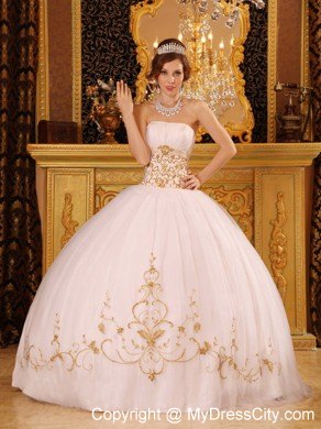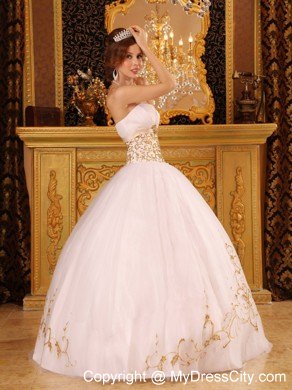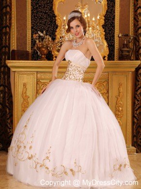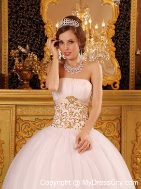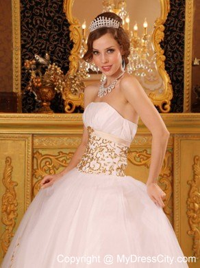 Make an entrance in this elegant and romantic strapless quinceanera ball gown. The structured bodice is highlighted with constracting floral beaded applique and a band on the bust to showcase your bust curve . the full skirt is emblished with the symmetrical beaded appliques. A lace up corset style closure in the back secures the dress in place. You will look like a million in this quinceanera dress !