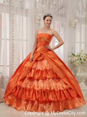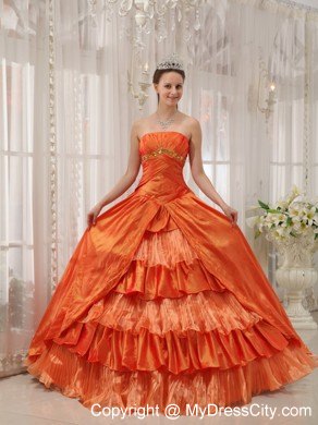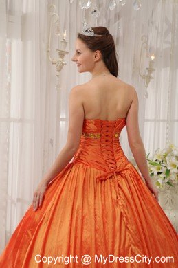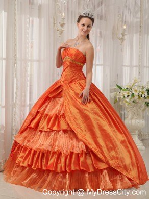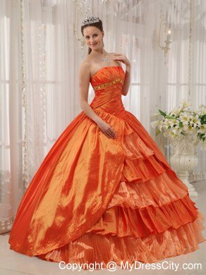 A beautiful, graceful quinceanera gown for you to choose. The ruched bodice accent the golden beads on the under bust line and a lace up back. The ruched details hug you tightly to show your charming curves. The gwon accent two tiers, the out layer is a split taffeta with embroidery on the edge; the inner layer features tiers of interphrased ruched tulle and taffeta fabric makes a sassy look. A corset-style closure completes the look.