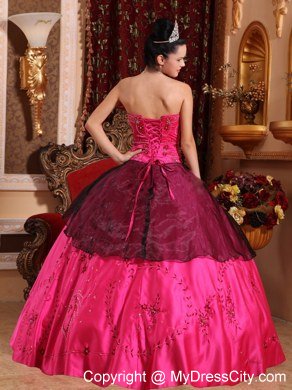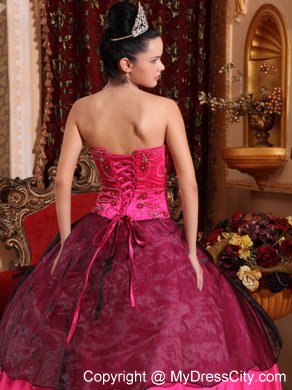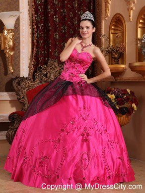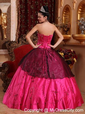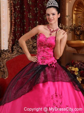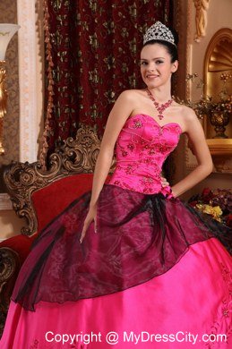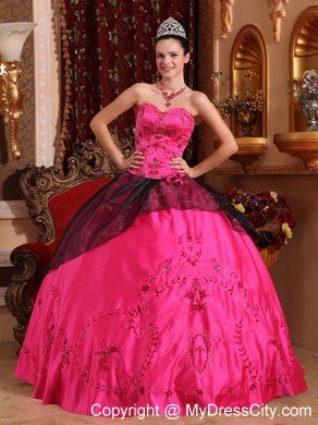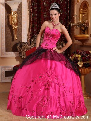 This fushcia quinceanera dress will make you the spylight in any occasion you attend.The sweetheart neckline bodice accented by the exquisite embroidery and the boning details flatters most figures. While the skirt in a constrasting color is adorned by the floral embellishment all throughout. A corset back completes this fabulous design..