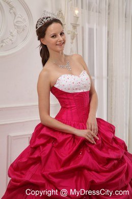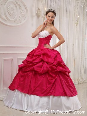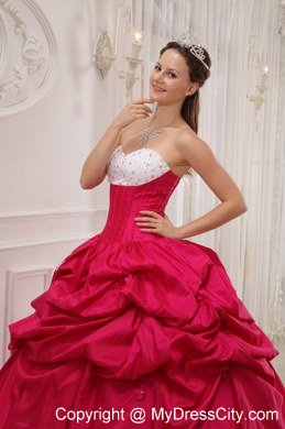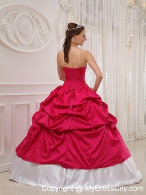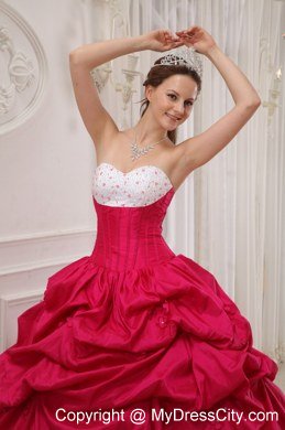 You only get one opportunity to have your quinceanera, so please make sure your dress is a memorable with this quinceanera look. This red and white quinceanera is your choice. The strapless bodice with a sweetheart neckline and all dainty shimmering beadings makes the gown so elegant and exquisite. The asymmetrically ruched bodice in contrasting color made from the stunning taffeta fabric creates a beautiful shape.A lace up back completes the look.