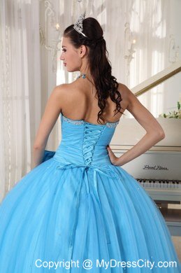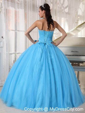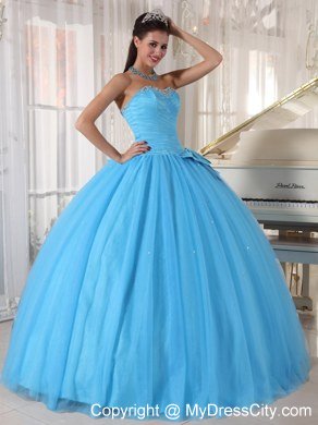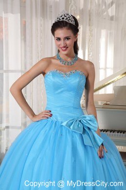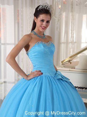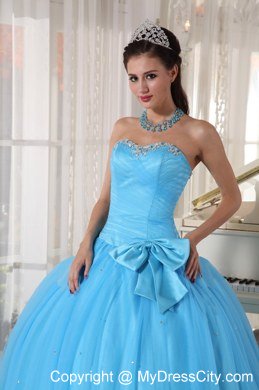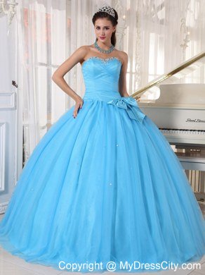 Simple but beautiful! This floor length ball gown is featured by a lovely sweet heart neck which is decorated with delicate beading and pleats. The bow around the waist adds elegant and charming to the dress. The outside layer of tulle creats a puffy effect.