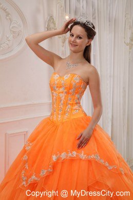 A romantic quinceanera dress that conquer countless heart of girls. It features with a sweetheart neckline and a sheathy bodices accents silver appliques throughout. The skist is is finished with layers of tulle to creating a flowing and full look. The lace up back complete the look. Wearing this dress, you will sure be the shinning star at the party.