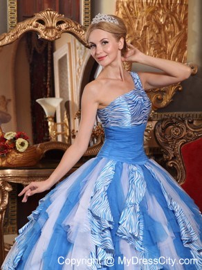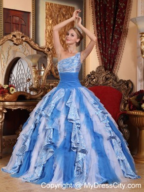 This quinceanera dress is fantastic. This dress with multiple color features a one shoulder bodice. The special design and zebra print add beauty and grace to the dress. The floor length skirt is adorned with ruffles throughout. You will make a grand entrance and a lasting impression by slipping into this exquisite ball gown.