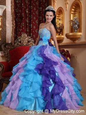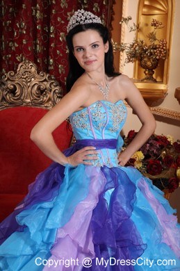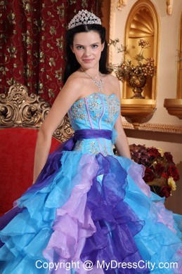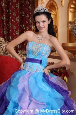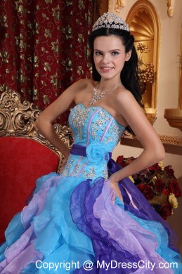 Look like a princess in this amazing strapless ball gown dress style.This sweetheart strapless pleated bust and gorgeous applique throughout bodice.Full ruffled skirt is stunning with multi colors. The corset style bodice is finished with a lace up tie back. Classic and elegant ball gown is modern and stylish.