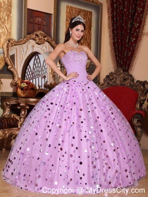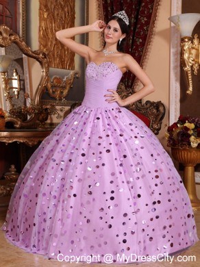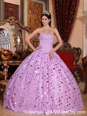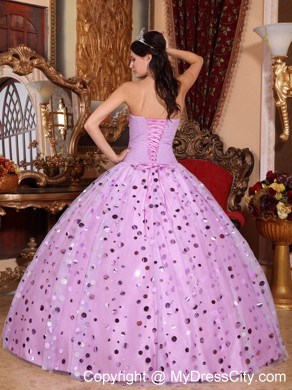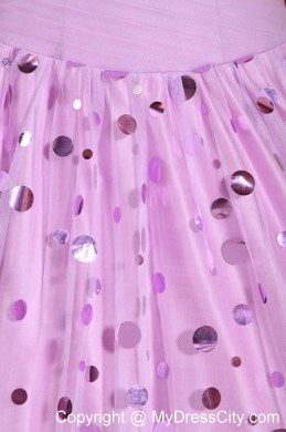 Strapless dresses are one of the sexier styles on the market today. They show just enough skin to be classy without being too revealing. This one features a strapless bodice with pretty beading suffuse the breast part. Many golden, shimmering paillette embellishments on the tulle top layer of the skirt adorn the dress throughout and catch the light in a lovely way. The dress sways beautifully across the floor when you move, as if you're floating on air. A lace up corset style closure in the back secures the dress in place.