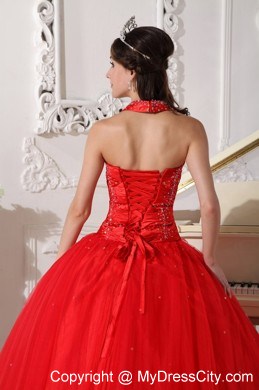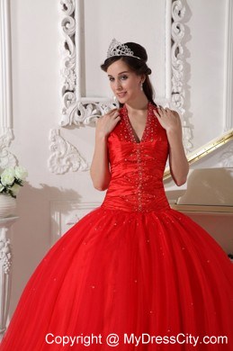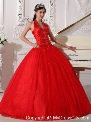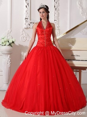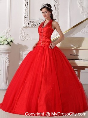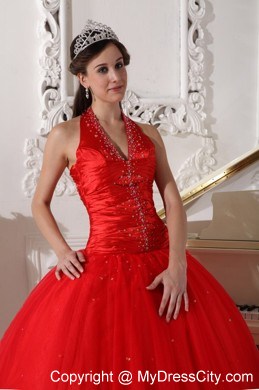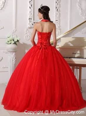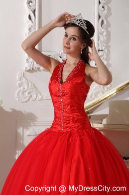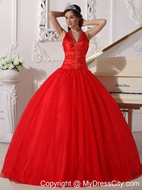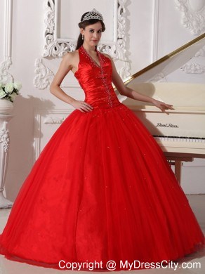 So gorgeous ball gown dress includes design of halter neck which is generally considered more provocative than other style. You can find that beading decorate the whole bodice which looks charming. The bare back of this V-neck gown will make you looks demure. Dressing the red ball gown, you will light up the night. Throughout the full maxi dress, the elegant and poised temperature is displayed entirely. What's more, no matter what color you chose, the amazing effect won't lose. And the lace up design will fit you better.