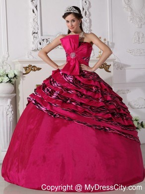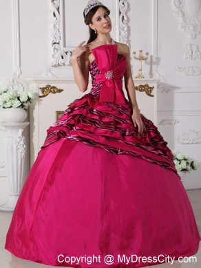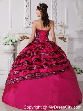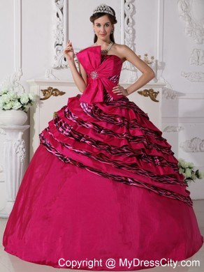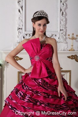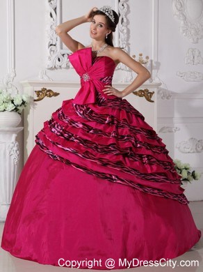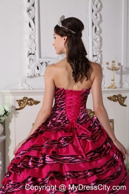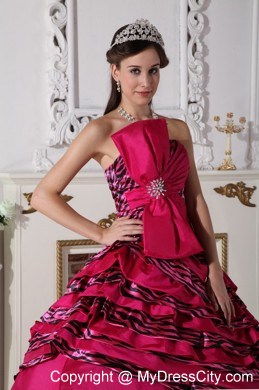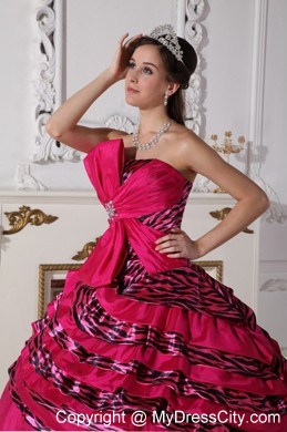 This quinceanera dress is so gorgeous. It features a strapless bodice with the bust part decorated with a big bow and ruchings. The zebra print layers and red layers jumble together on the skirt. You will be the star of the show in this gorgeous strapless gown.