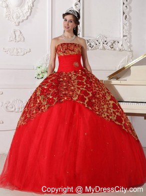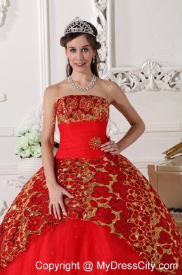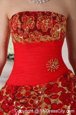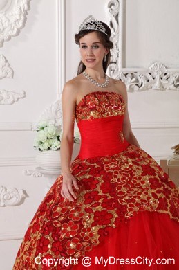 If you're a fan of the fancier, finer things in life � this might just be the dress for you. It features a gorgeous strapless bodice with shimmery rhinestone embellishments, a sweetheart neckline and some shining sequinces on the bodice. The midsection of the dress is gathered and part of the ruched top layer of the A-line skirt. The underlayer of the skirt is made of many layers of great tulle fabric that create lots of fullness in the design. A stunning dress for those occasions when you really want to 'wow' the crowd.