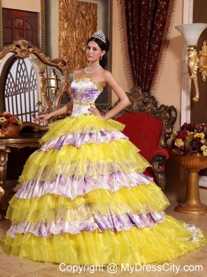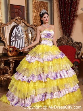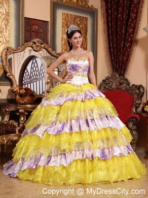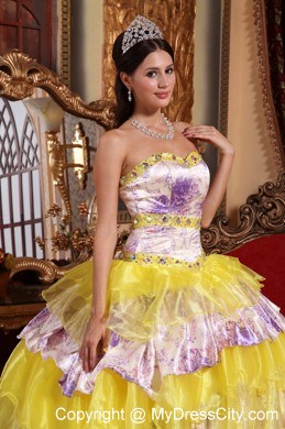 Star in your own fairytale at your 2012 quinceanera or formal in this quinceanera ball gown dress! The structured bodice with a modified sweetheart features dazzling beadings edged with the bust and waist, which accentuates your feminine qualities better than others. The beautiful skirt with corset closure is comprised of many tiers of winding ruffled circles that are sewn asymmetrically throughout the skirt. You are sure to be the best list !