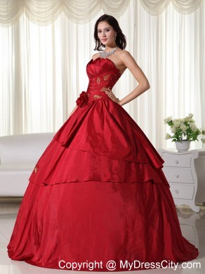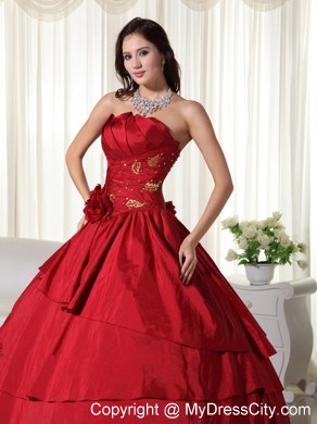 We make keeping up with the latest fashion trends easy at Milanoo. Made from a fabulous taffeta fabric, it features a strapless bodice with a lovely pleated texture and beautifully beaded appliques. The A-line skirt is made from several tieres of ruffle, which creates a fantastic texture throughout the design, and features a side gather with gorgeous fabric rose accents. A lace up back secures the dress in place and makes for easy off and on. A truly stunning dress for any occasion. Silhouette: Ball Gown