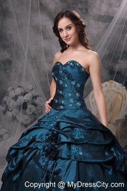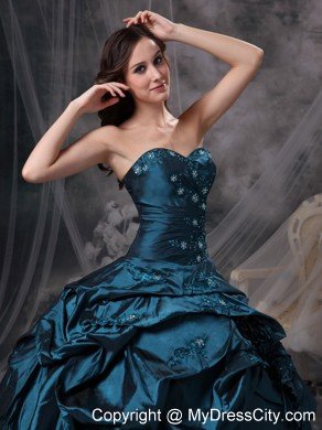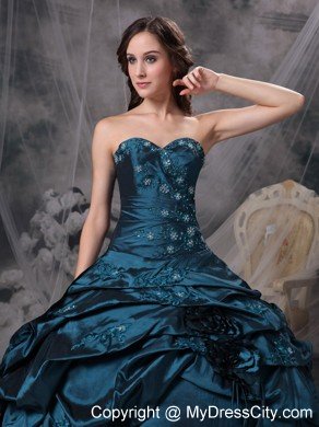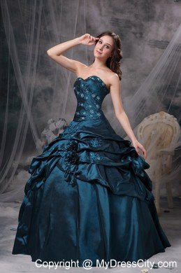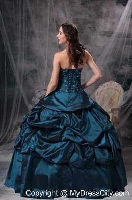 You'll be the belle of the ball in this quinceneara ball gown! The beautiful dress is made of a straight neckline and a corset-style closure in the back on the pleated bodice. The A-line skirt is overlayed with pleated fabric that adds to its overal fullness, and the hidden underlayer of the skirt is wrapped with a dreaming tulle adorned with embroidery, which adds a beautiful overall effect. This is a beautiful gown and would make a lovely addition to anyone's formal wardrobe!