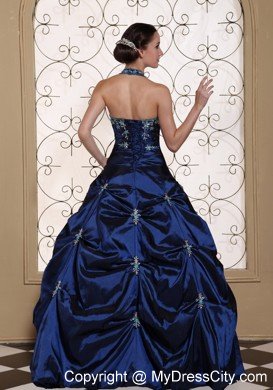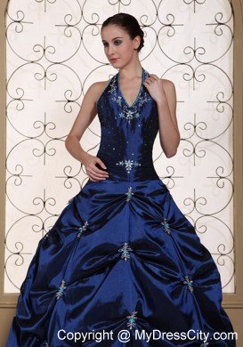 Picture-perfect elegance abounds on this utterly magnificent dress! Its artfully beaded sweetheart bust area and ruffles on the bodice also perfectly textured for a true fairytale look. The skirt sweeps boldly to the floor in a lustrous and exciting way. Chic pickups bring even more glamour to the table. The lower portion of this dress shimmers with sparking embellishments. With the traditional corset and a halter on the neck, you will be the most special one in any prom!