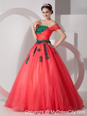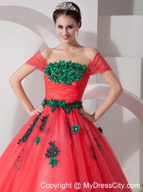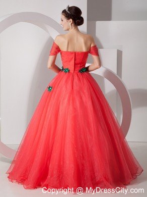 Chic and nobel!Just like the princess in the castle! It features a flattering specially designed off-shoulder neckline with gathered floral decoration in contrasting color accented on the heavily pleated bodice. Similar floral design adorns around the waistline as well as the top of the skirt which gives a sweet look.The ball gown skirt falls freely to complete the dress, it moves beautifully when you walk/dance.