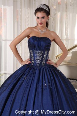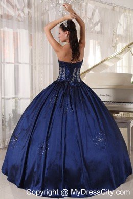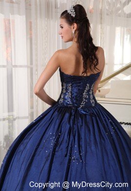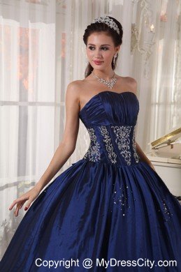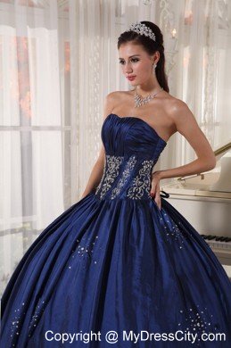 This sweetheart blue quinceanera dress is featured with the intricate appliques appearing in white color at the lower part of the bodice. The ruching on top of the dress ornaments the dress beautifully. And the tiny shimmering beads on the bottom of the dress completes the look.