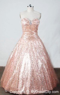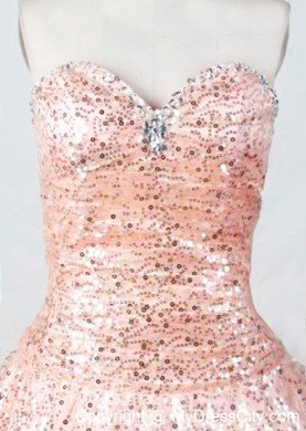 An all-over sequin makes this slim-line gown sparkle. The strapless sweetheart neckline is accented with crystals. The full ball gown has fashionable paillettes and gorgeous designs on skirt that are magnificent. The special zipper up design makes the back exotic.