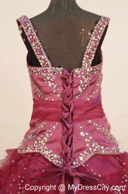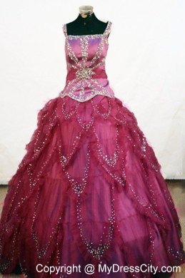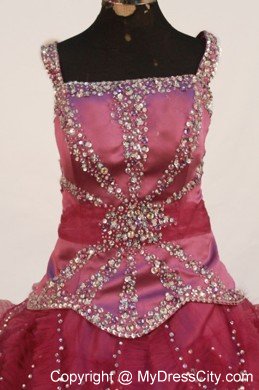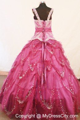 This amazing long pageant gown displays beaded tank straps with gorgeous beaded bodice in crystals. A gorgeous ball gown skirt with petal shaped tiers completes the look of this girl long pageant dress. This dazzling dress will make your girl feel like a princess.