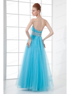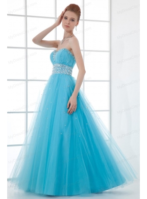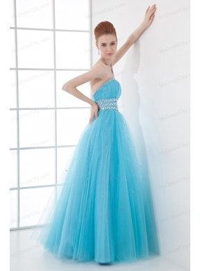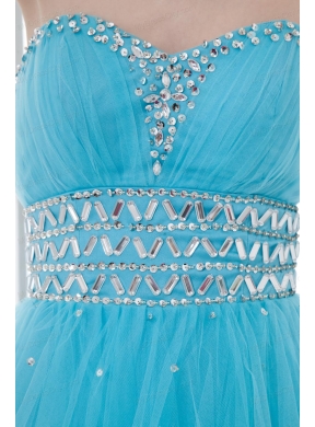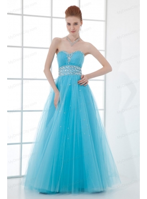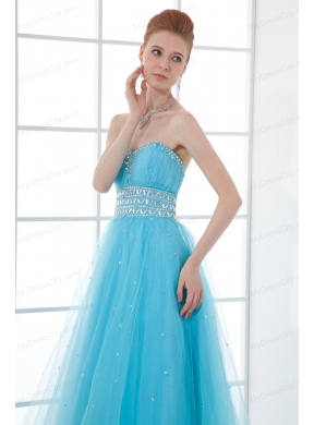 Silhouette: A-line Neckline: Sweathert Waist: Fitted Hemline/Train: Floor-length Sleeve Length: Sleeveless Embellishment: Ruchings and Beading Back Detail: Backless Fully Lined: Yes Built-In Bra: Yes Fabric: Tulle and Taffeta Shown Color: Baby Blue(Color & Style representation may vary by monitor.) Occasion: Prom, Formal Evening, Celebrity, Graduation Season: Spring,Summer,Fall