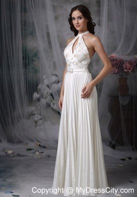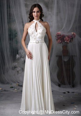 To be a gorgeous at your party, with this beautiful and luxury prom dress, you will be the shinning star! It features a halter-top neckline and the hook hole design shows your beautiful chest and raises lots of fantasies in your mind. The sexy bodice accented with the elegant embriodery and a satin sash which adds the royalty of this dress encrusted with a beaded ring. The midsection rows form two straps in the back, which adds lots of interest and detail. The pleated skirt falls in clean, smooth lines to the floor, wrapping your legs in lovely chiffon. Simplistic elegance at its best!