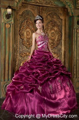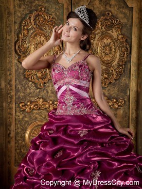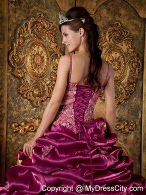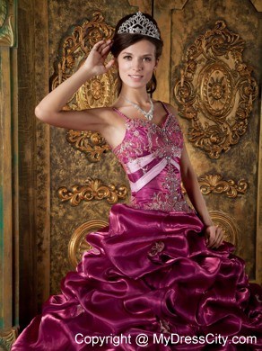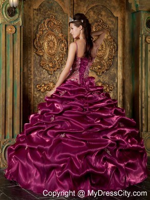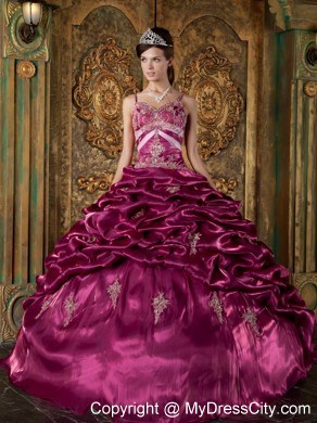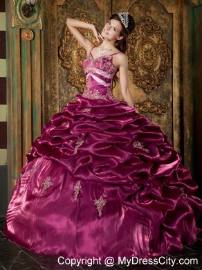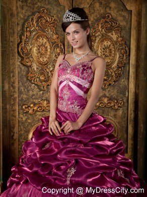This ball gown quinceanera dress is straps with sweetheart neckline. The ornate Jeweled applique throughout the bodice of the gown. Contrasting fabric make the dress more attractive. The skirt is voluminous with bustled throughout. This is a fabulous pick for a quincinera or sweet sixteen birthday party.