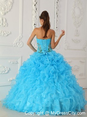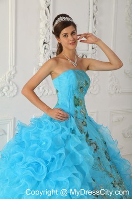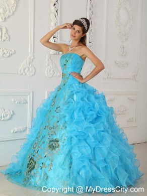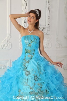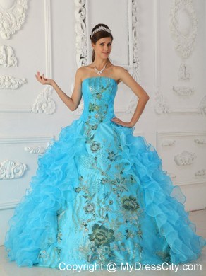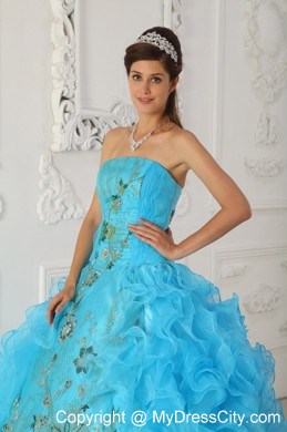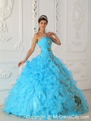 You will be the queen at the party with this classic quinceanera gown. The design is inspired by the idea of chinese embroidery, the ball gown skirt features a slit in the front, the rest is adorned with layers of organza ruffle.