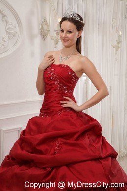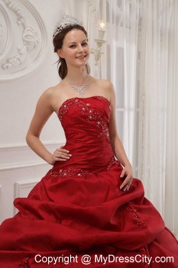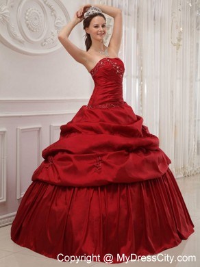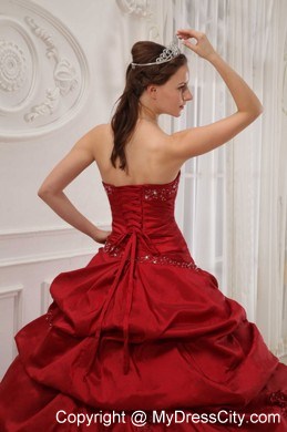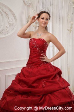 Dears ,you have the only one opportunity to have your own special quinceanera.So please seize it,otherwise you will feel regret.This red quinceanera is your best choice.The strapless bodice is encrusted with some lovely embellished beadings, while the ruching part can contures your slim figure completely. The bouffant symmetrical skirt with some scattered beadwork flows freely. A lace up back completes this gorgeous design