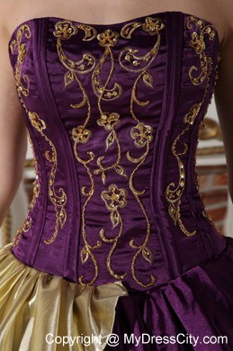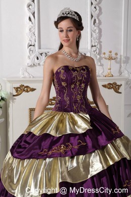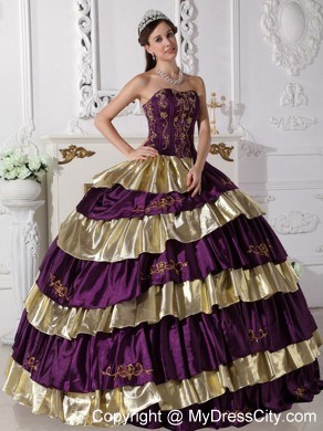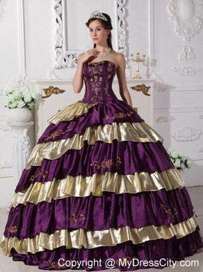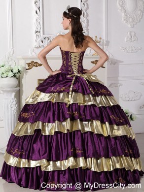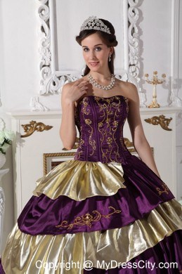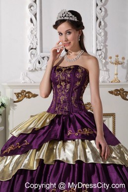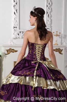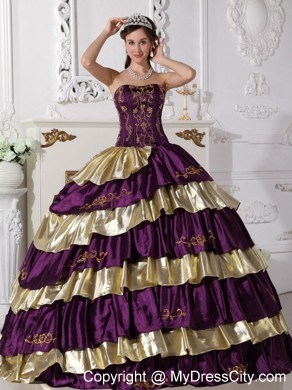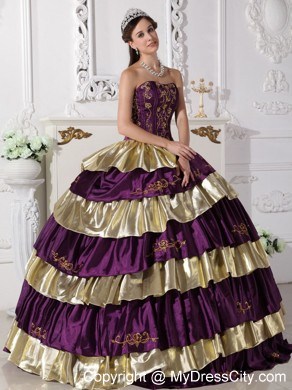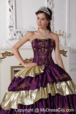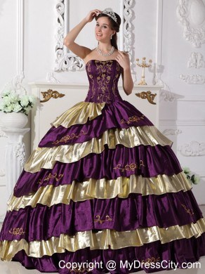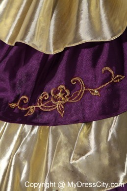 The exquisite strapless bodice is accented by specific embroidery.The ball gown floor length skirt adorned by the tiers of ruffles and the contrasting color bring this dress dramatic effect.The lace up back completes the look.You will look like a noble pricess on the dress.