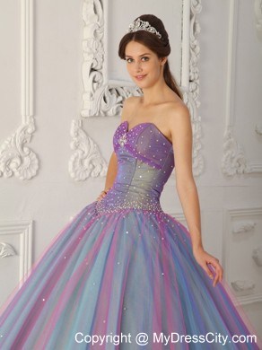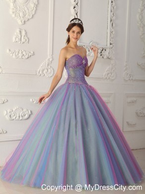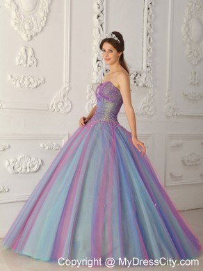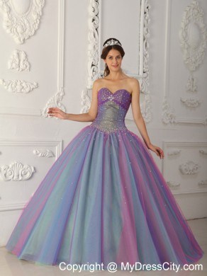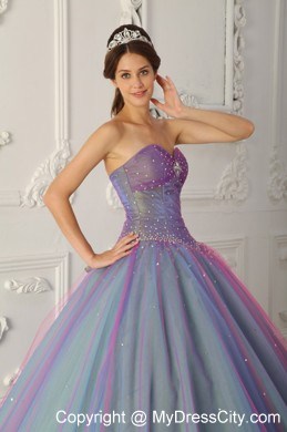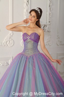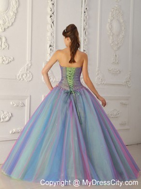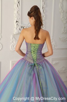 Extremely fit and flare! Taffeta bodice with a sweetheart strapless neckline, a quatrefoil blooms in the middle of the bust make the bodice more than simple. Multi-color outer layer with scattered beading, like the crystal snow flowers in the dress constituted the unique view !Green lace up back raise your eyebrow!