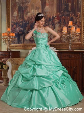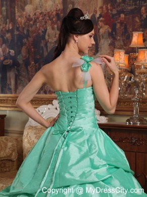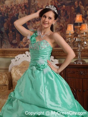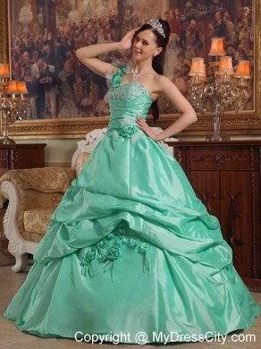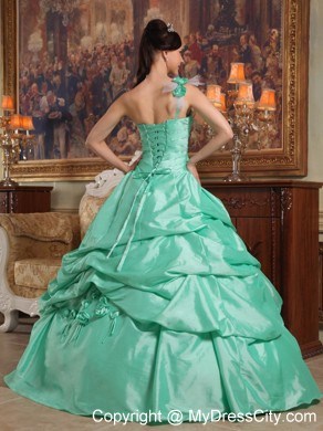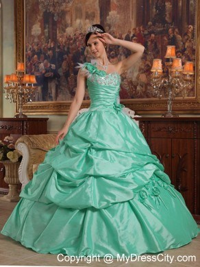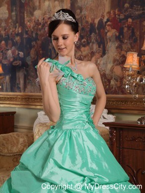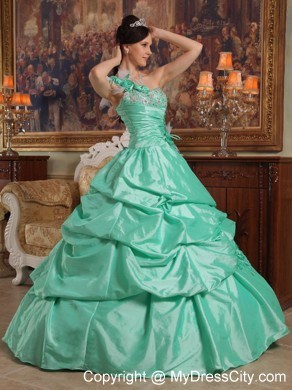 Have you ever dreamed for the romantic and lovely gowns? This one may be just what you are looking for. It has a exquisite flowered one-shoulder neckline with gorgeous beadwork on the top of bodice. The bustline of the dress is embellished with embroidery and beading that add interest and detail. The bottom is accented with ruched fabric, which appears a sense of romance yet grace. A lace up closure finishes the look.